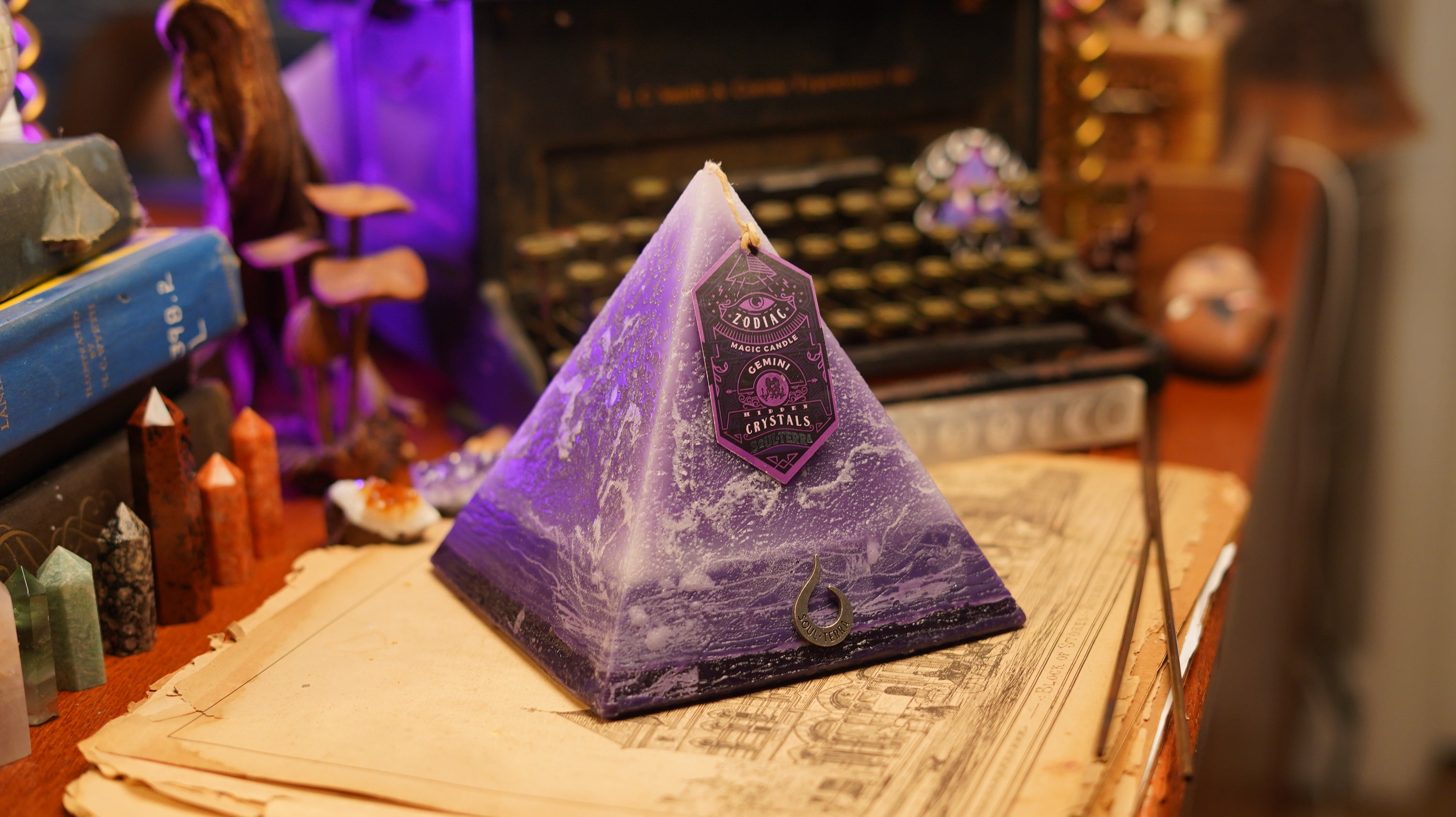 Every Soul-Terra® candle has unique crystal gems, runes, rings, pendants, talisman, and/or tarot cards inside.