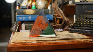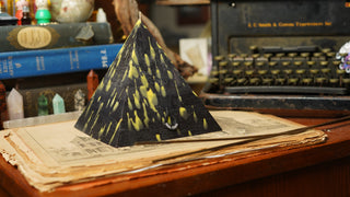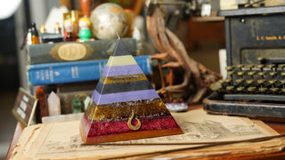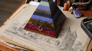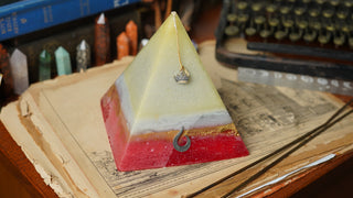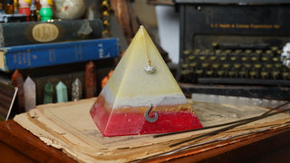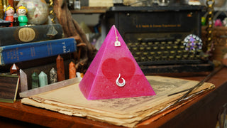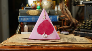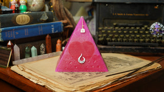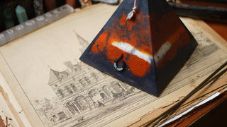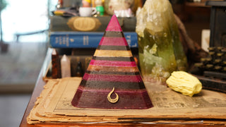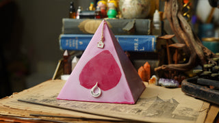Handcrafted by scent alchemists, each is infused with a hidden crystal and charged beneath a copper pyramid—where sound, scent, and sacred geometry awaken its energy.
