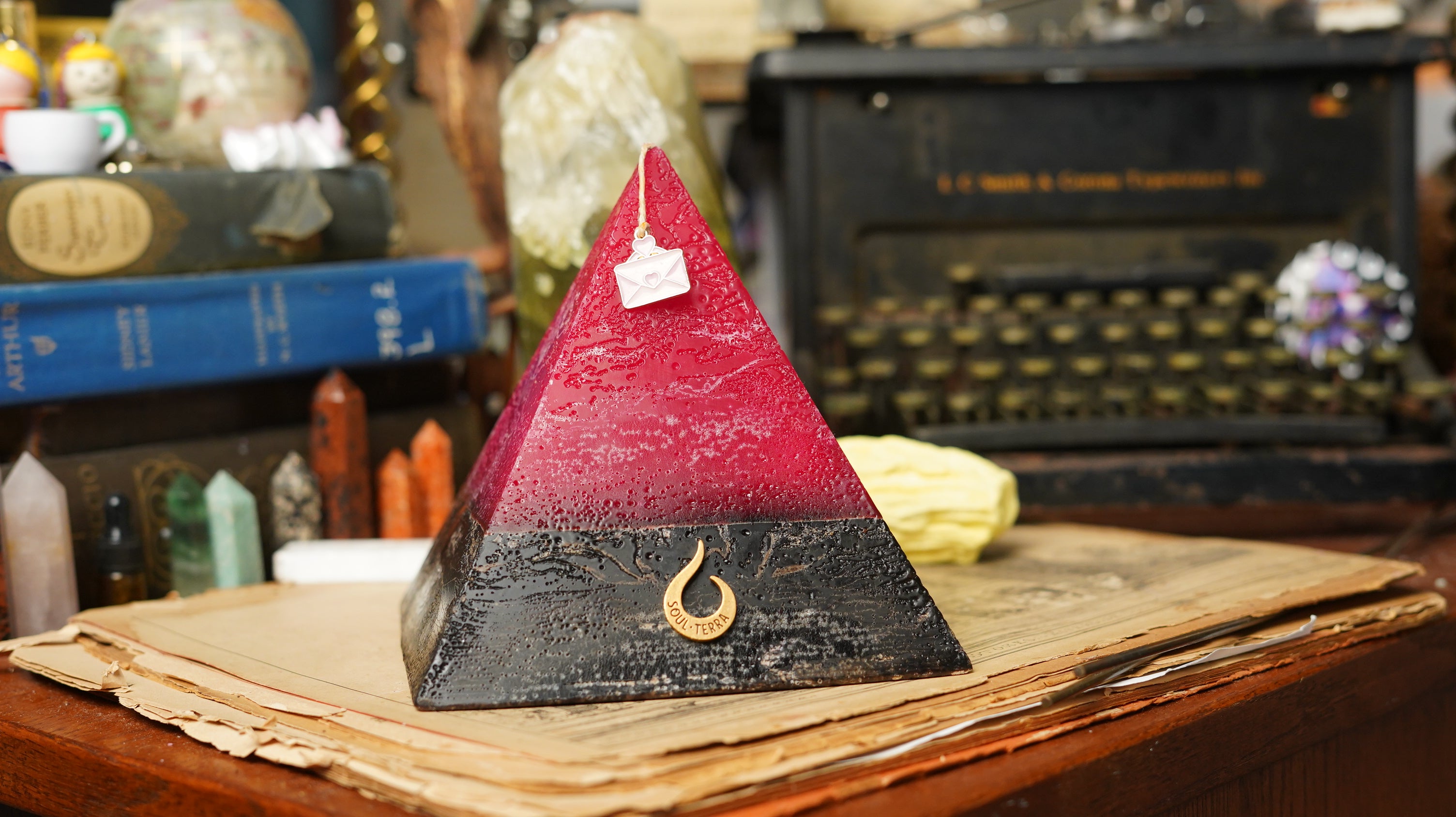 Every Soul-Terra® candle has unique crystal gems, runes, rings, pendants, talisman, and/or tarot cards inside.