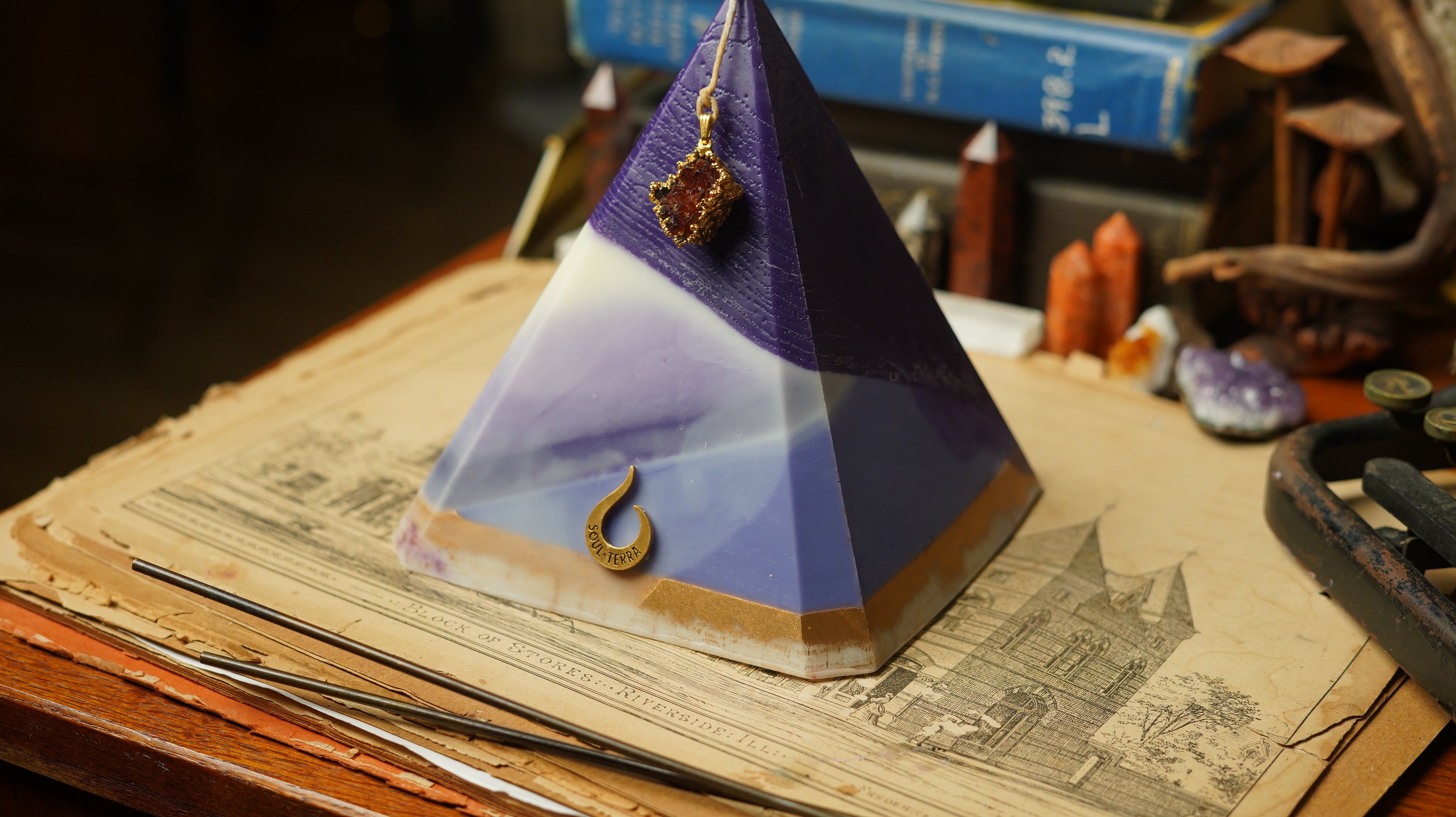 Every Soul-Terra® candle has unique crystal gems, runes, rings, pendants, talisman, and/or tarot cards inside.